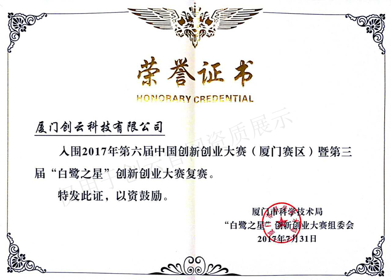 廈門(mén)市動(dòng)漫企業(yè)認(rèn)定證書(shū)